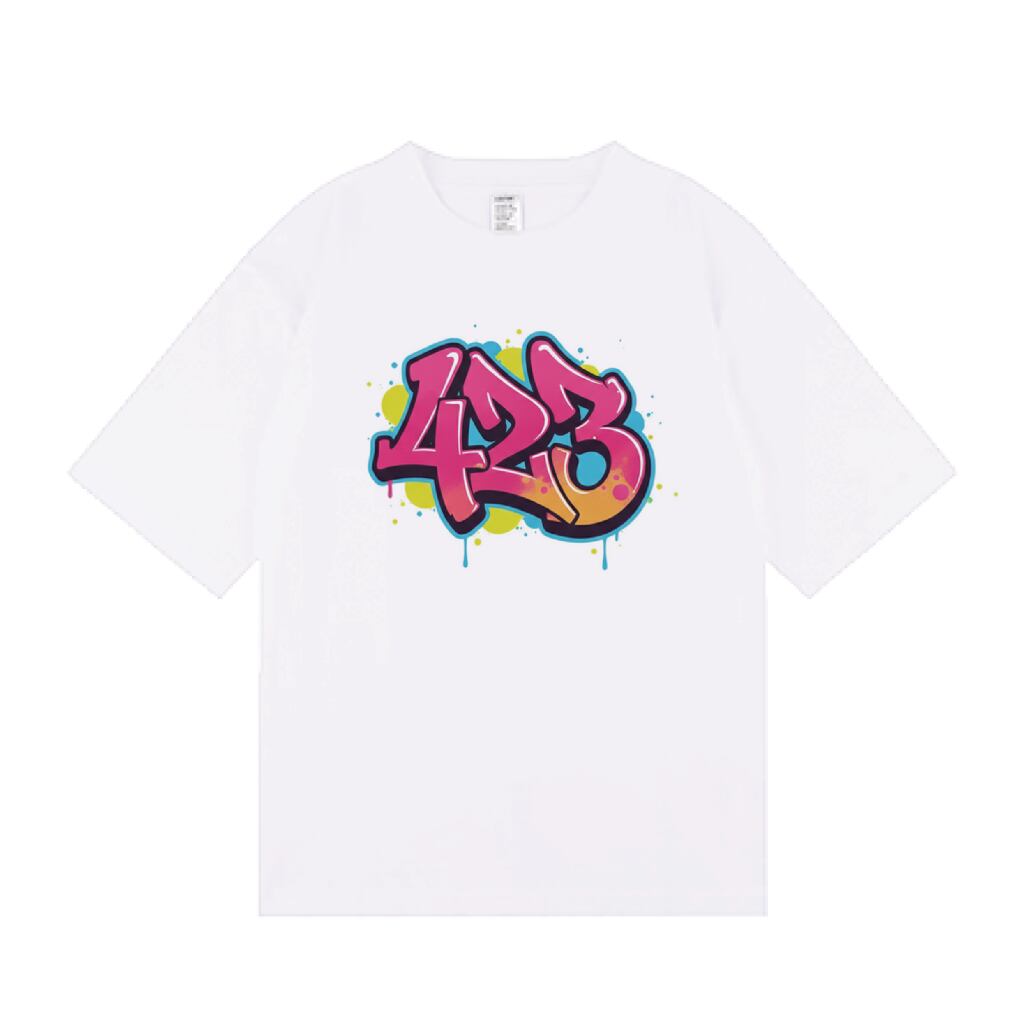 デザイン: 巨匠のエッセンスを「423」に凝縮。ストリートの熱気を感じるスプレーアート・フロントプリント。