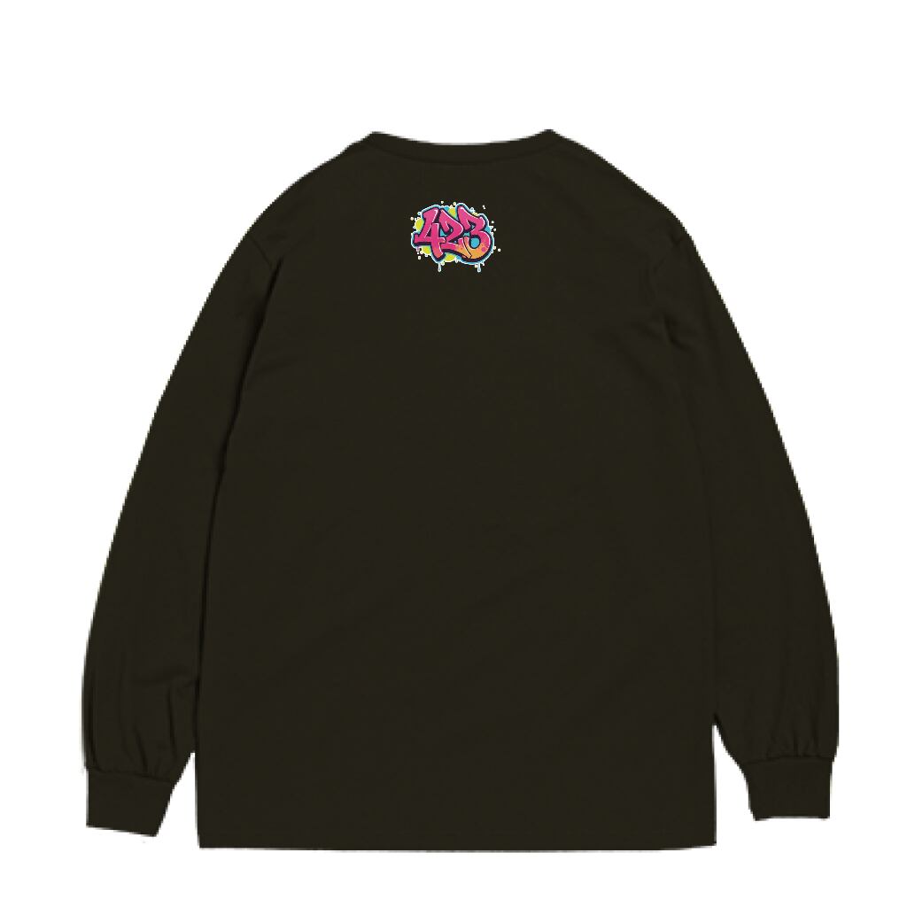 デザイン: 巨匠たちのエッセンスを宿した「423」ロゴを、あえてバックの首元にワンポイント配置。引き算の美学が光るスプレーアートデザイン。